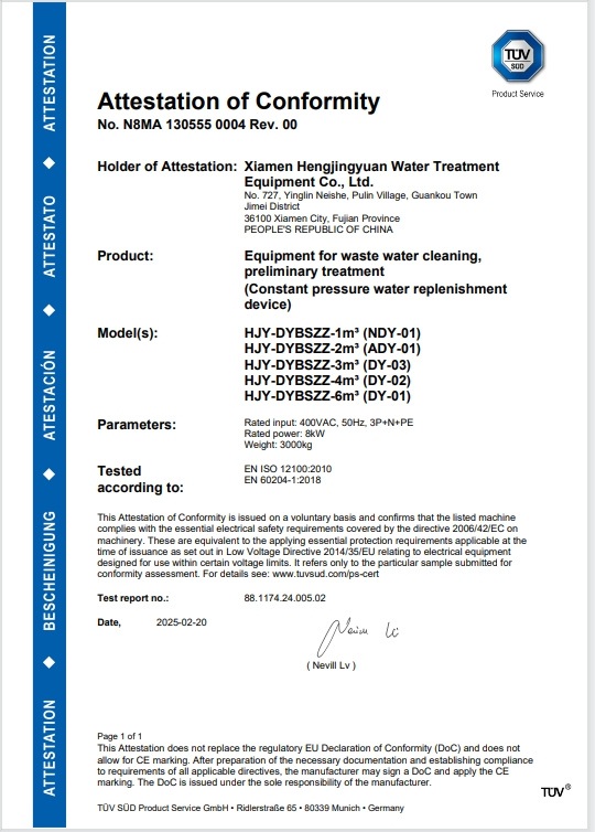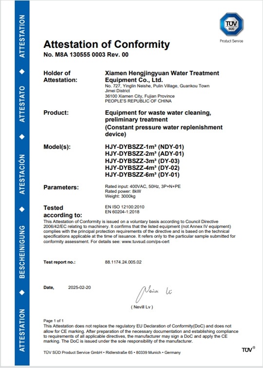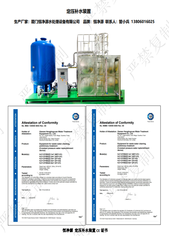 定壓補水裝置 CE 證書